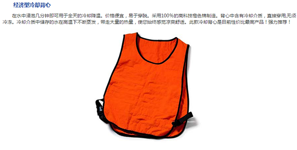 冷卻背心,美國(guó)ALLEGRO生產(chǎn)的降溫用品,有“人體空調(diào)衣”之稱(chēng),是高溫工作者的必備用品。