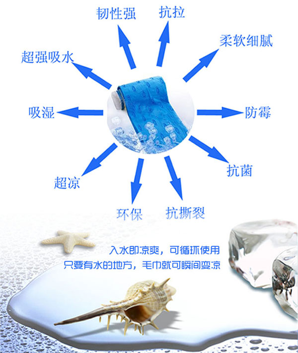降溫毛巾,使用方便、不用冷藏、不需用電,一次加水,使用時(shí)間長(zhǎng)達(dá)數(shù)小時(shí),工作時(shí)佩戴,不僅能止汗,還能使身體感到?jīng)鏊?,?jiǎn)直是高溫作業(yè)者的必備降溫用品。