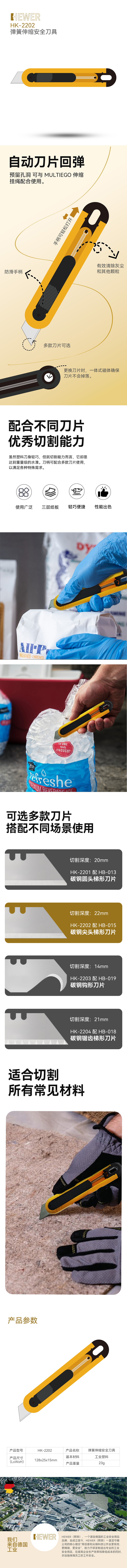 HEWER通用安全美工刀 HK-2203標(biāo)配HB-019碳鋼鉤形刀片