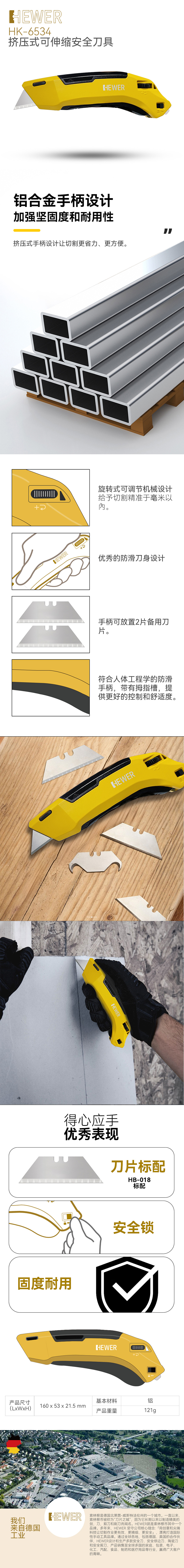 HEWER 耐磨工業(yè)安全刀 HK-6534標(biāo)配HB-019碳鋼鉤形刀片